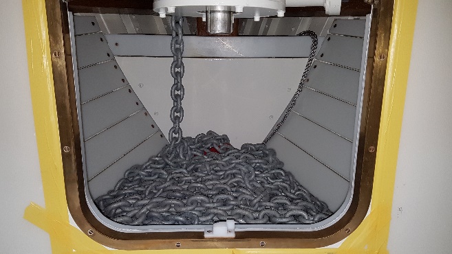 Anchor chain being loaded into the locker